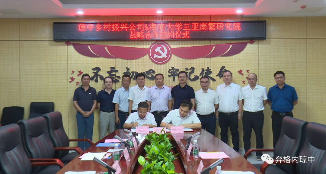 4月28日下午,琼中黎族苗族自治县乡村振兴控股发展有限责任公司与304am永利三亚南繁研究院签署战略合作协议,正式开启双方优势互补、资源共享、互惠互利、协同发展的新篇章。304am永利三亚南繁研究公司党委书记郑中兵出席签约仪式。